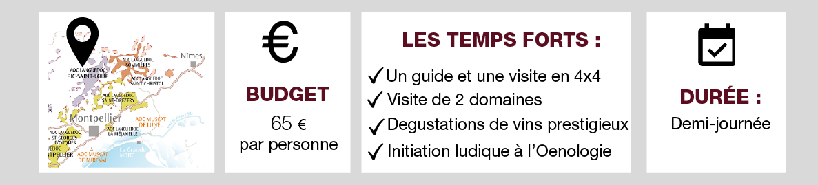 -Balade guidé en 4×4 avec halte gourmande au cœur des vignes.